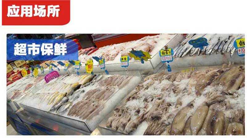 超市冰鮮片冰制冰機(jī)一般應(yīng)用于水產(chǎn)海鮮冰鮮、肉類食品冷藏?cái)[設(shè)等;深圳冰之星片冰制冰機(jī)生產(chǎn)出來的是不規(guī)則鱗片狀碎冰,這樣就省去了把大塊冰打碎的過程,機(jī)器占地面積又小,安裝操作簡單,機(jī)器可以自動化出冰儲冰,客戶可以隨時取用片冰,價格也不貴。
