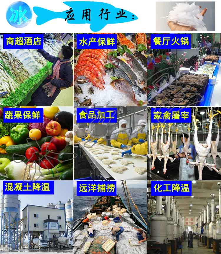 片冰機(jī)是制冰機(jī)的一種,按水源區(qū)分可分為:淡水片冰機(jī)和海水片冰機(jī),按使用領(lǐng)域區(qū)分可分為:商用片冰機(jī)和工業(yè)片冰機(jī)。片冰主要應(yīng)用于:超市、酒店、自助餐廳、火鍋店、海鮮酒樓、海鮮冷藏保鮮、食品加工降溫、水產(chǎn)品加工、家禽屠宰及海鮮深加工、化工降溫、混凝土冷卻攪拌降溫、漁船遠(yuǎn)洋運(yùn)輸、蔬菜水果冷藏保鮮、人工造雪等領(lǐng)域。