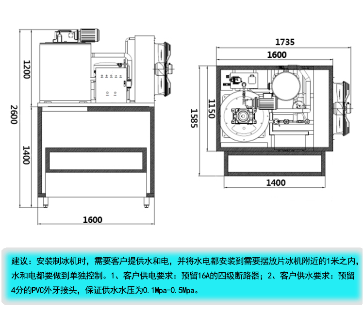 | 11 | 儲(chǔ)冰庫(kù)外型尺寸(長(zhǎng)*寬*高) | 1600*1585*1400 mm | 儲(chǔ)冰量1200kg |